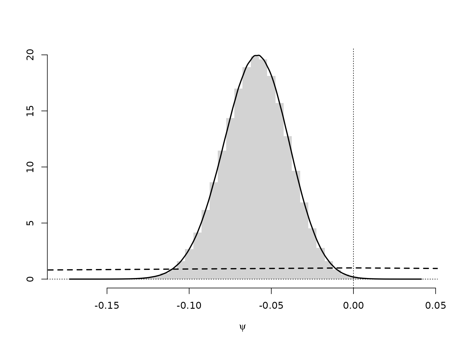 lines(d <- density(psi), lwd = 2)